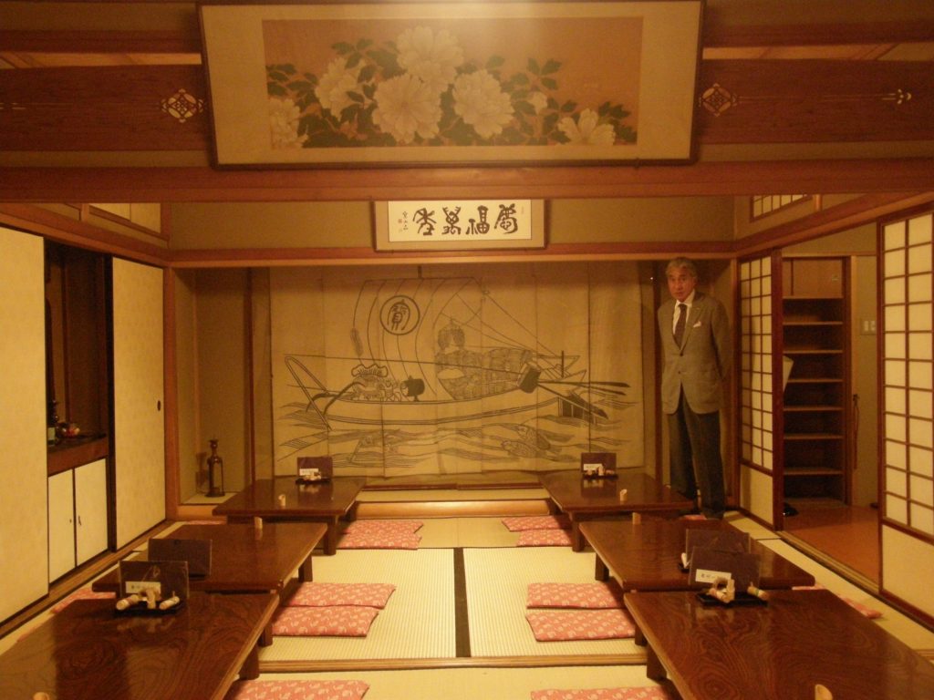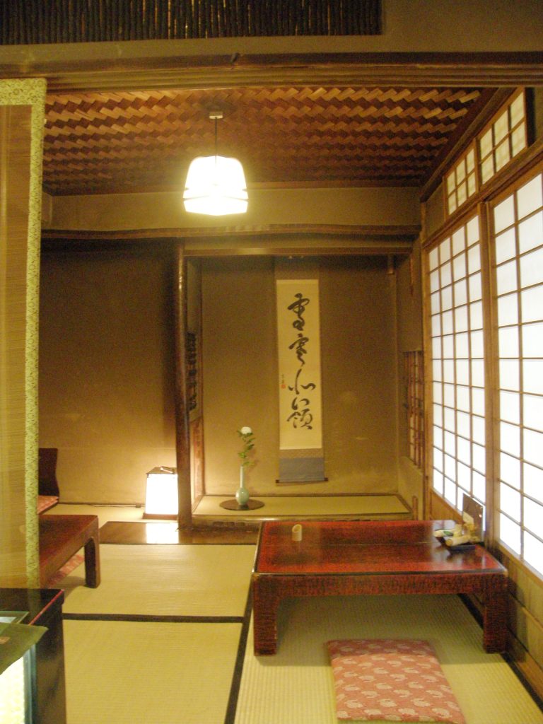 今の建物は明治18(1885)年に棟上げ。お店の玄関と、入って右の茶席は当時のまま。以降、2階建てにしたり、建て増してきた。