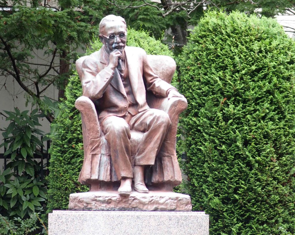新渡戸稲造生誕の地に建つ新渡戸像(盛岡市)